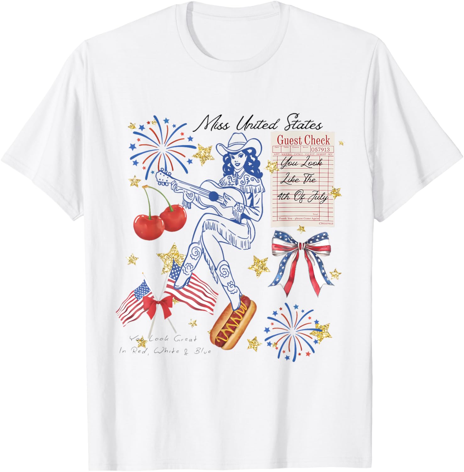 Vintage Cowgirl Miss United States Guest Check 4th Of July T-shirt