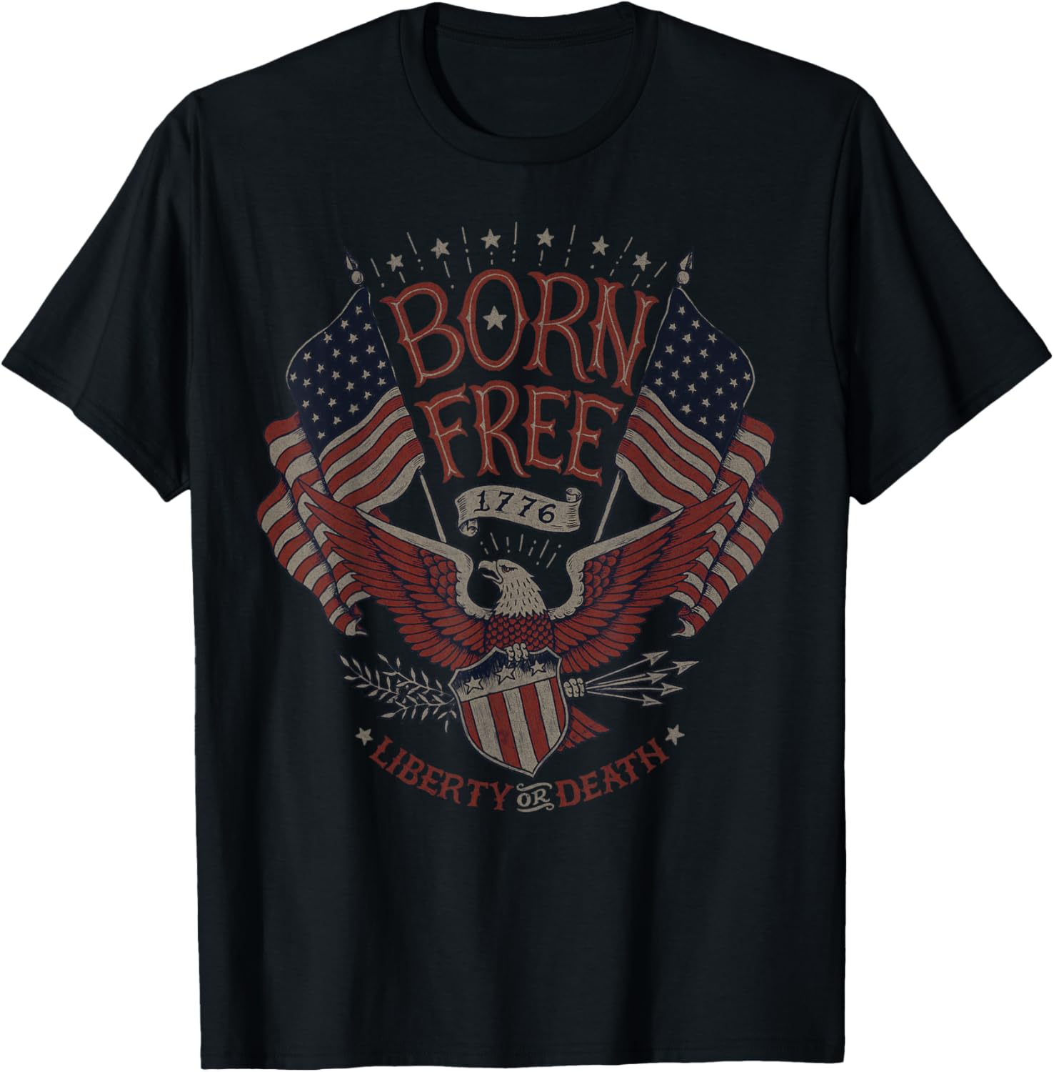 Vintage Born Free Eagle American Flag 1776 4th of July USA T-Shirt