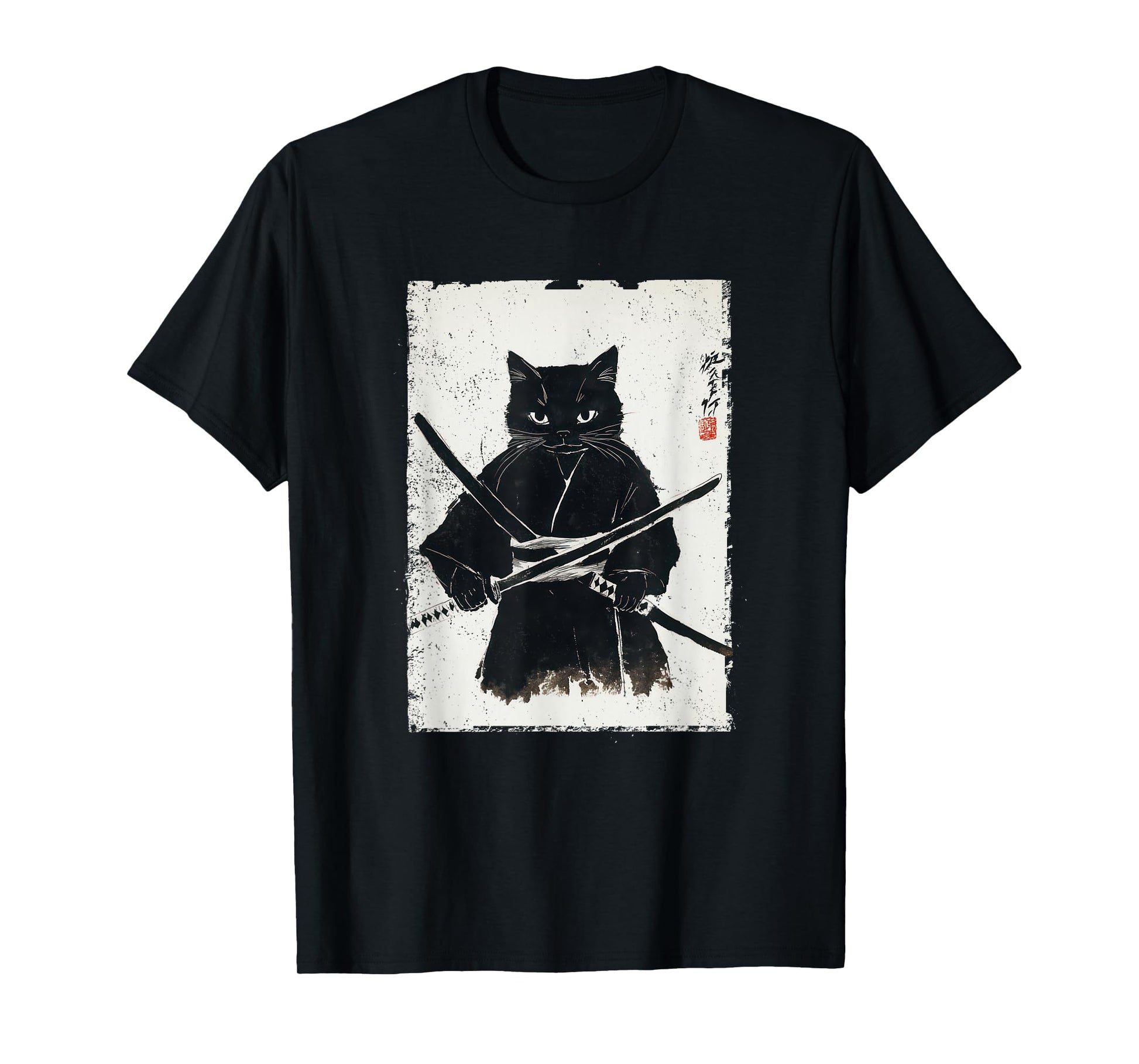 Vintage Samurai Cat Graphic Art Japanese Ukiyo-e T-Shirt