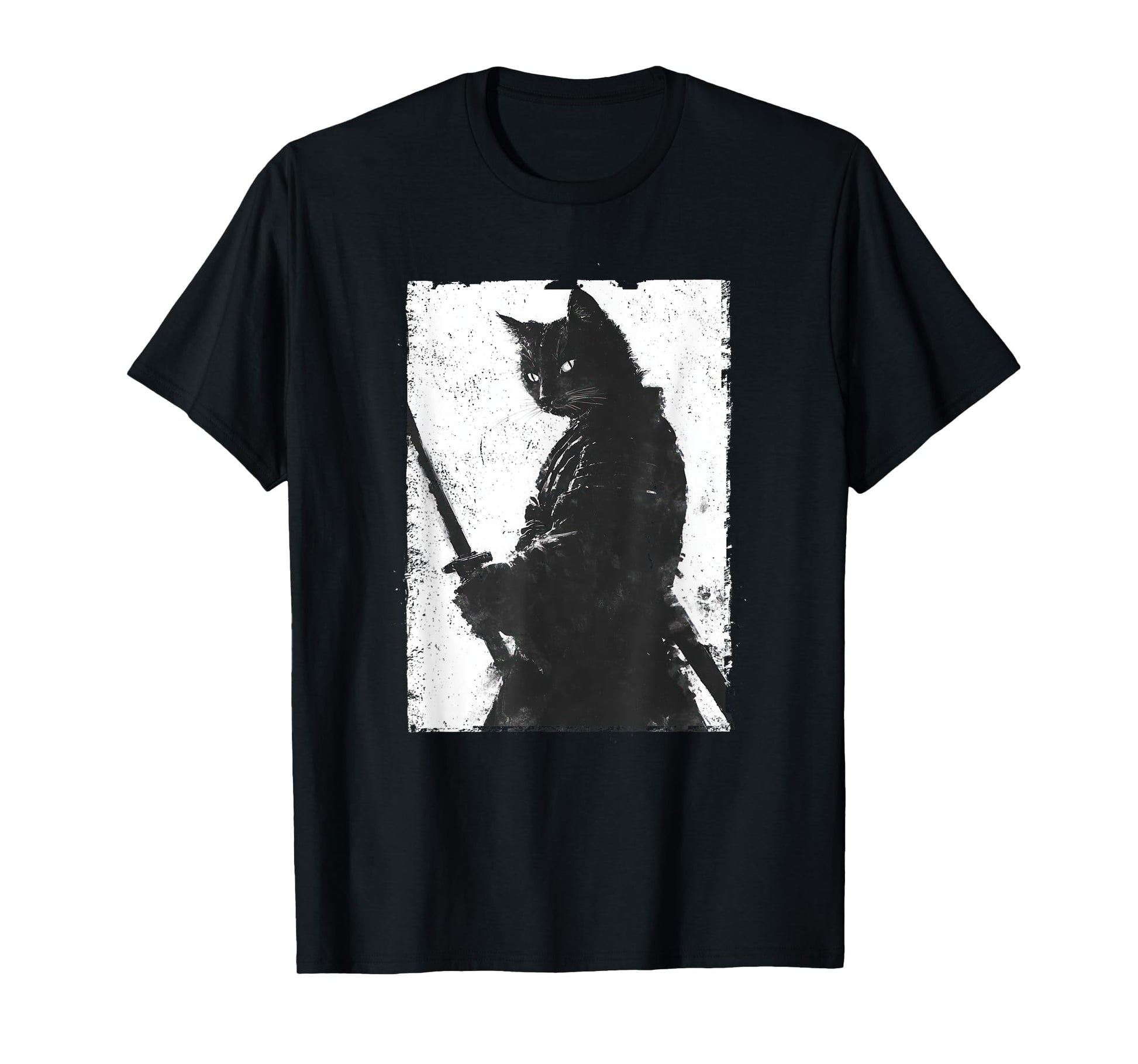 Vintage Samurai Cat Graphic Art Japanese Ukiyo-e T-Shirt for Men Women Girls Kids