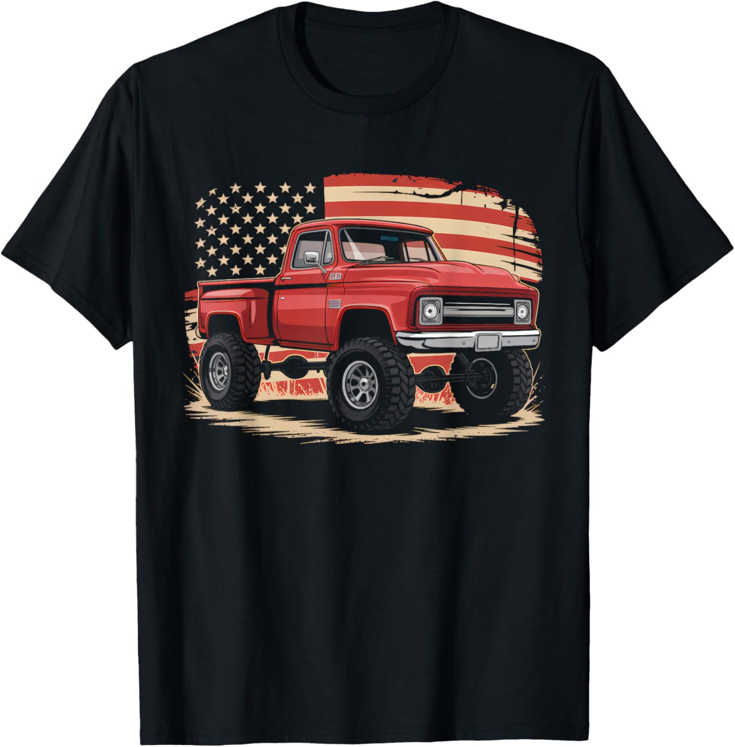 Vintage Squarebody Pickup Truck With Usa Flag Patriotic T-shirt
