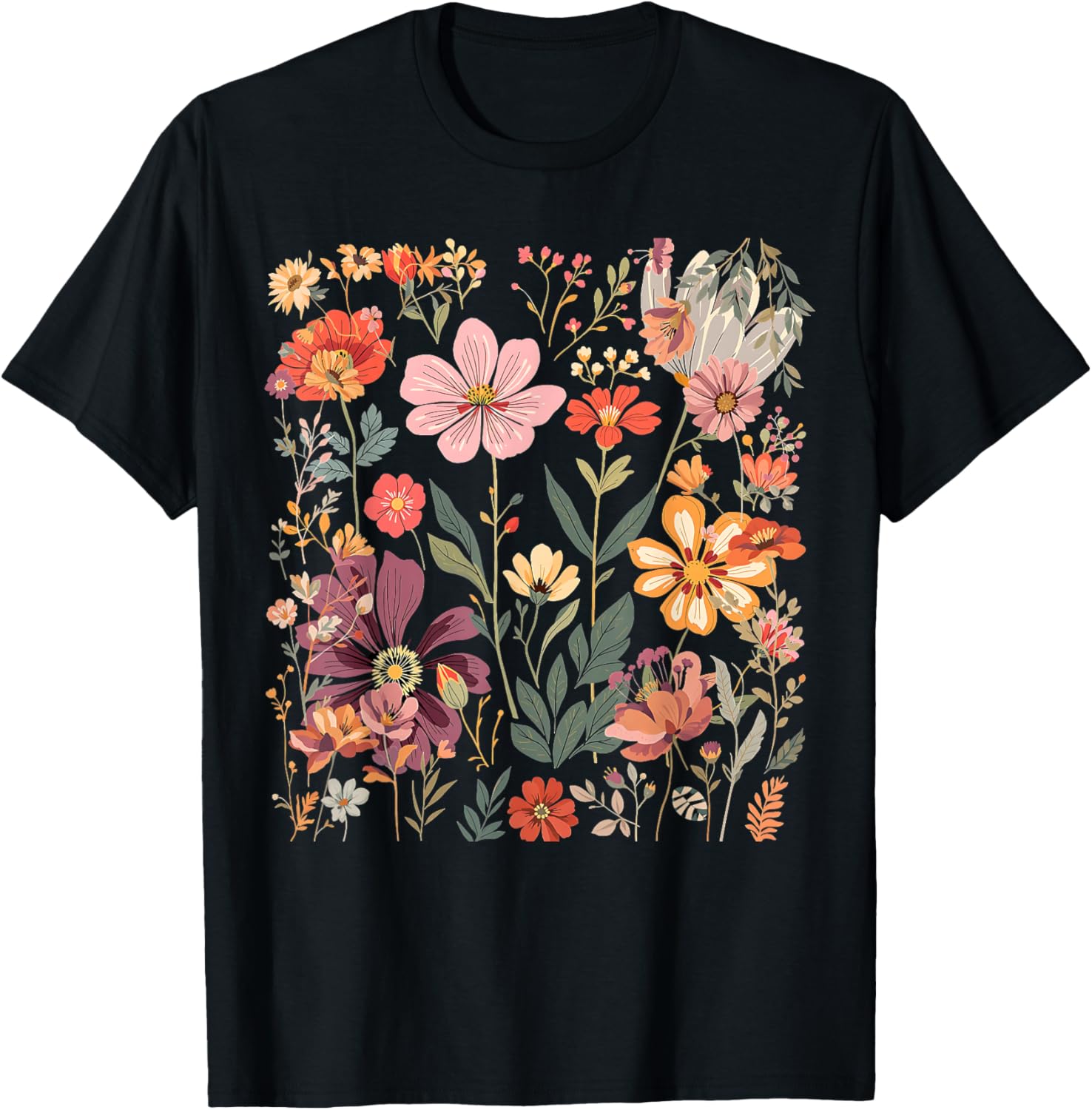 Wildflowers Pressed Flowers Art Vintage Boho Floral T-Shirt