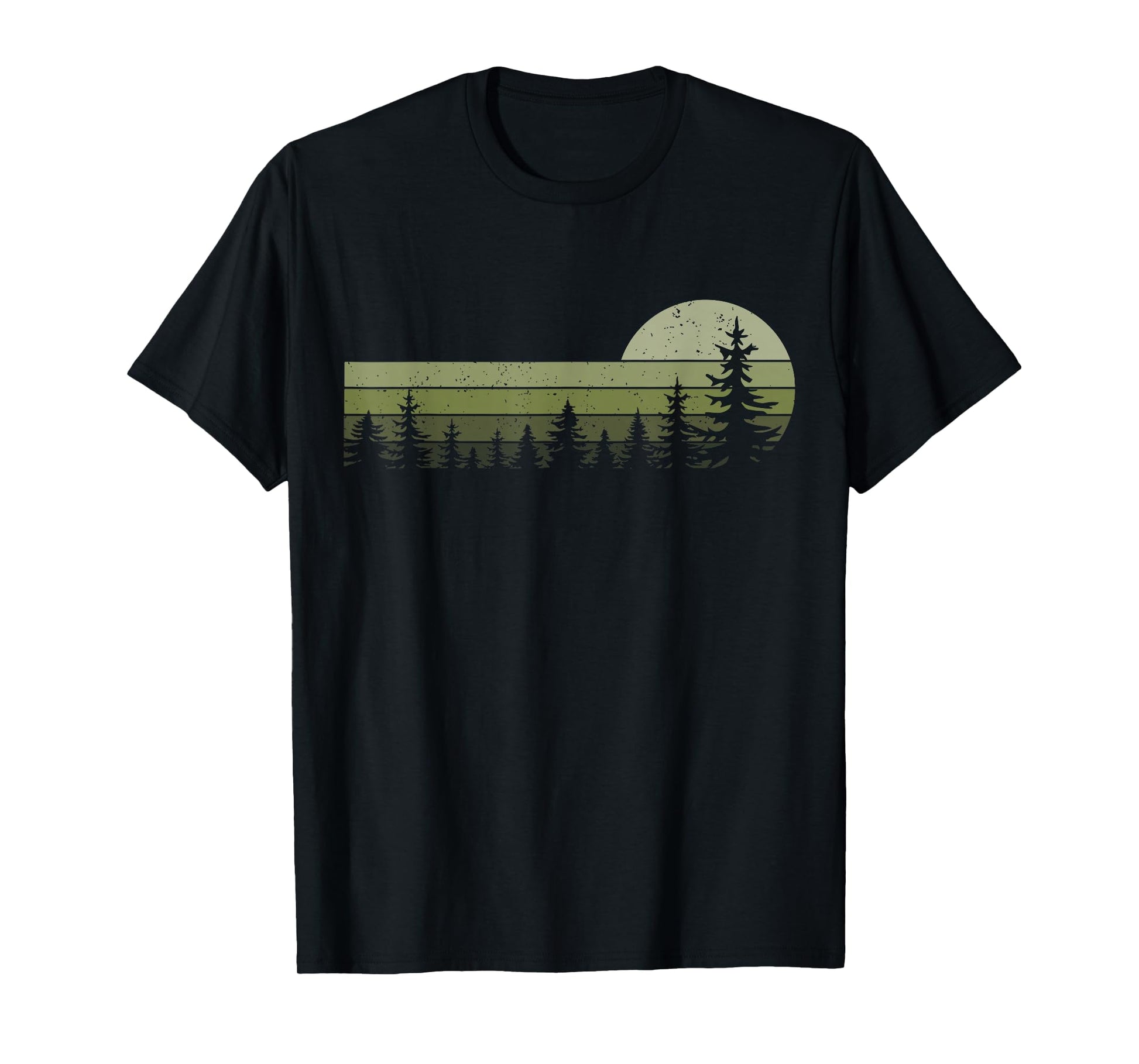 Wildlife Vintage Sunset Mountain Forest Trees Hiking Nature T-Shirt