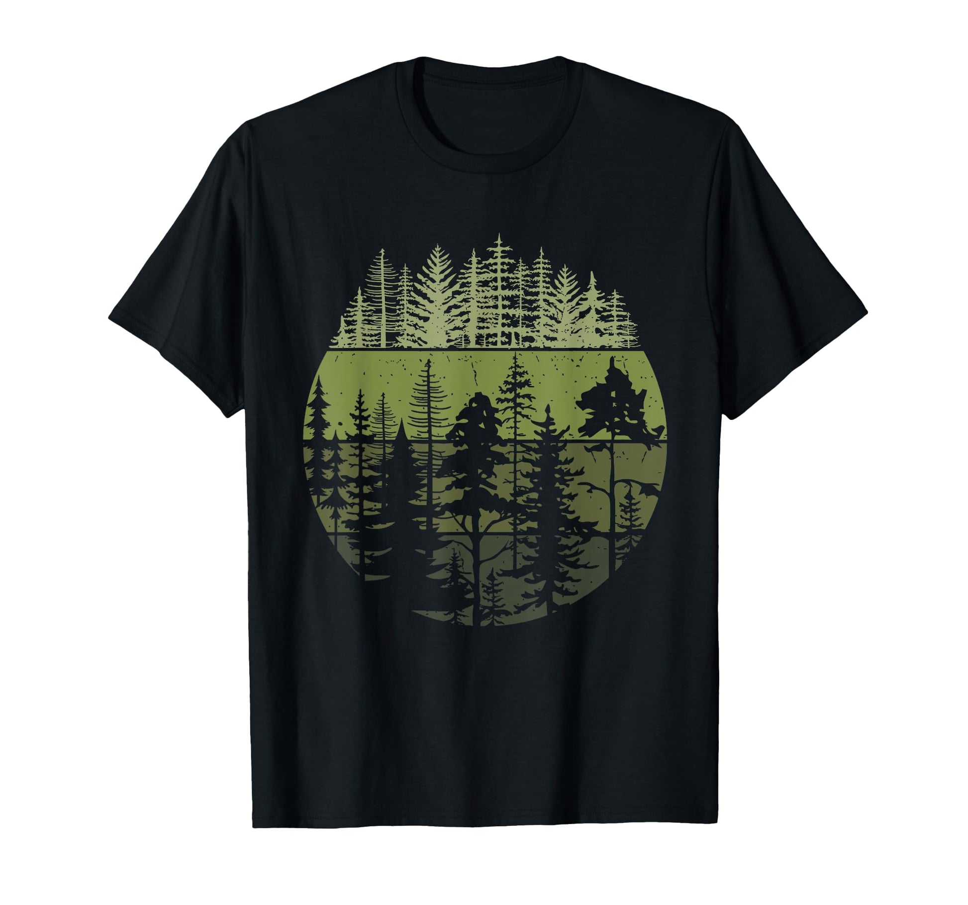Wildlife Vintage Sunset Mountain Forest Trees Hiking Nature T-Shirt