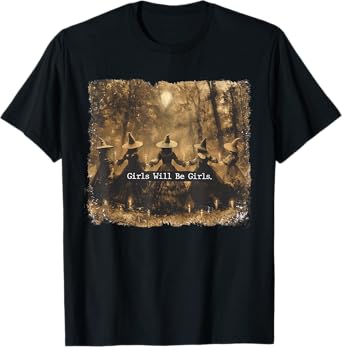 Women Girl Will be Girls Patriotic Feminist Halloween Witch T-Shirt