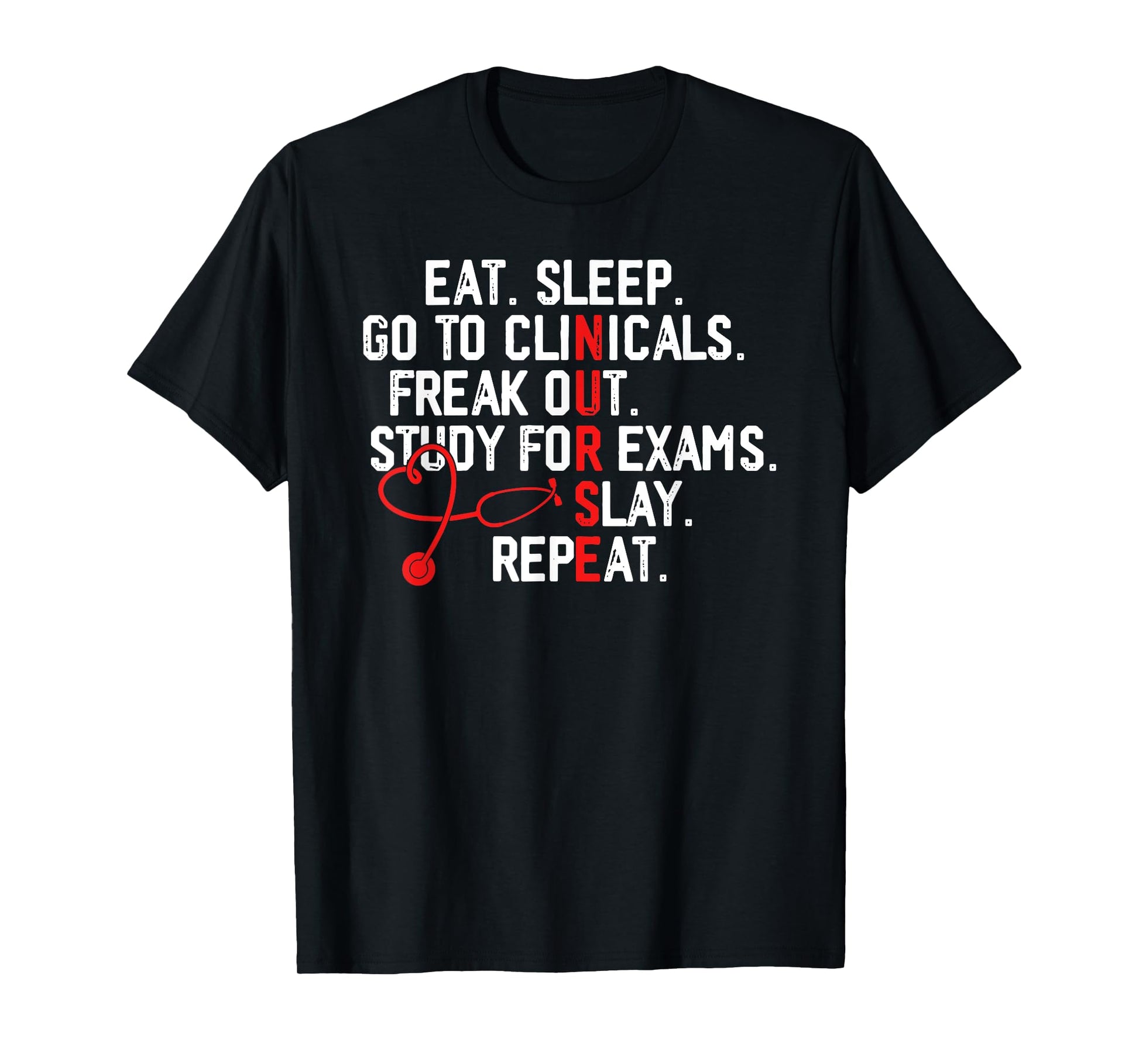 Womens Funny Eat Sleep Go To Clinicals Nurse Life Nursing T-Shirt