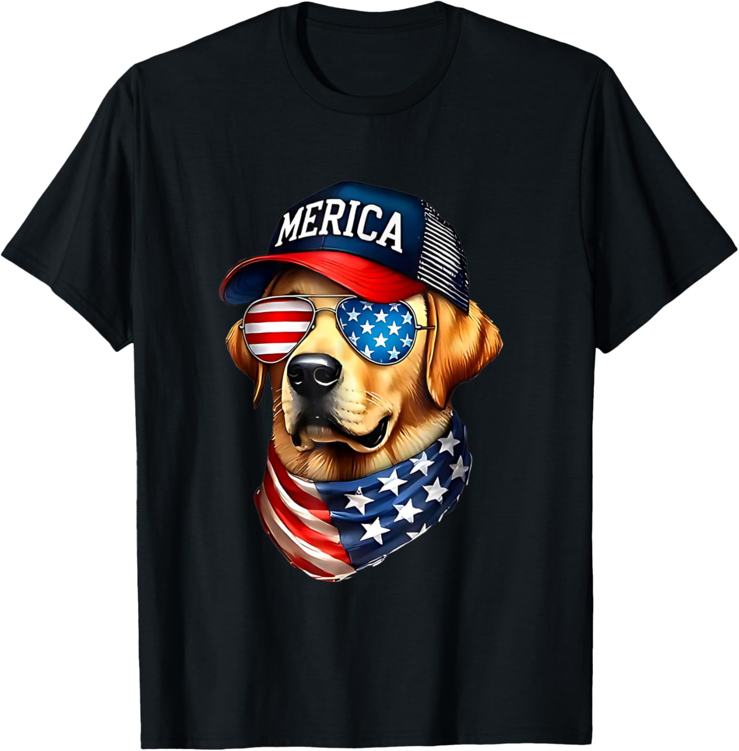 Yellow Labrador Retriever 4th of July Merica USA Flag Lab T-Shirt