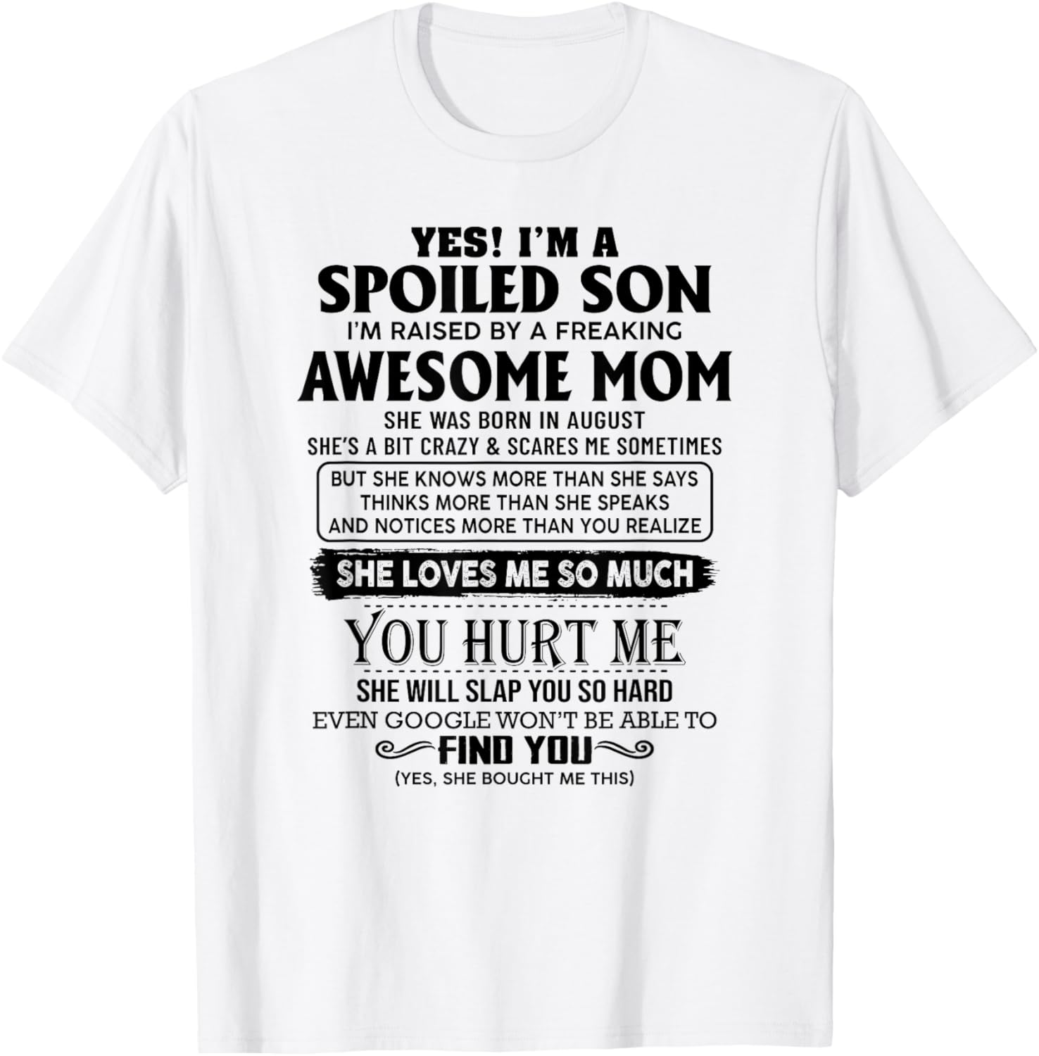 Yes I'm a spoiled son I'm raised by an awesome mom august T-Shirt