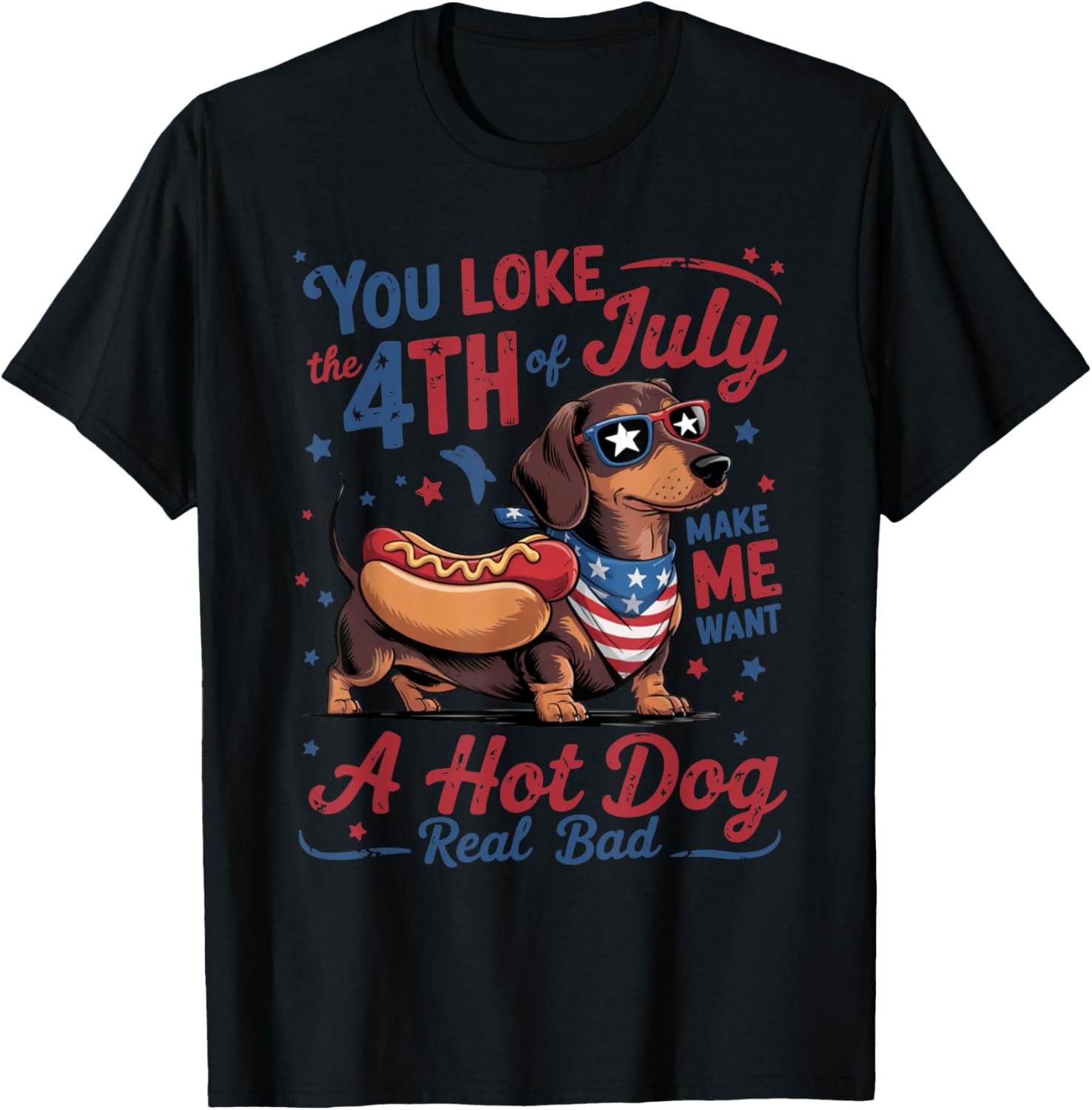 You Look Like The 4th Of July Want A Hot Dog Funny Dachshund T-shirt