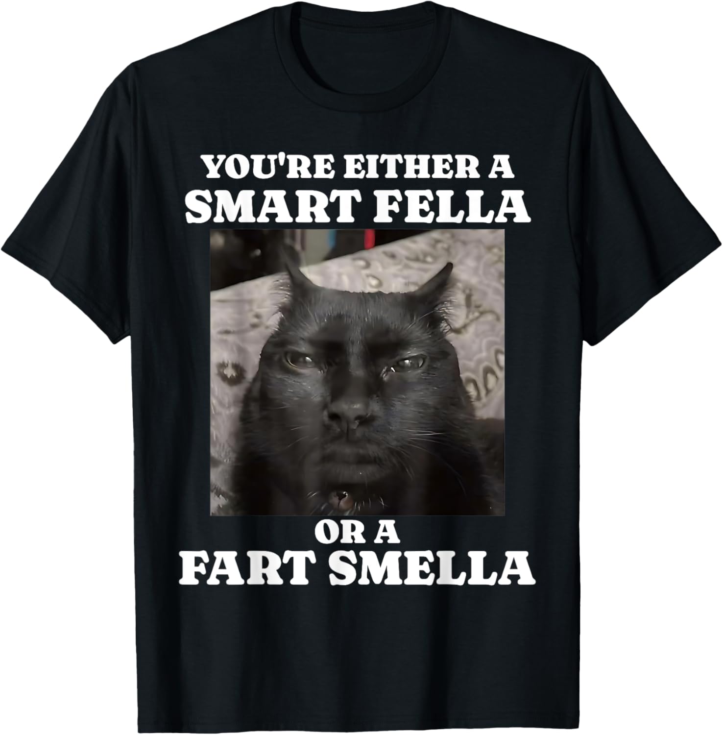 You're Either a Smart Fella or a Fart Smella Funny Cat Meme T-Shirt